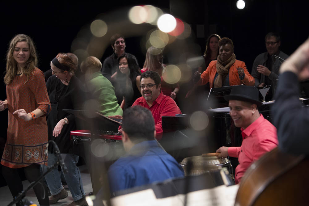 Congratulations to Arturo O’Farrill and the Orchestra whose release The Offense of the Drum recently won the Grammy award for best Latin Jazz album. Here Arturo celebrates with the orchestra and audience after a recent concert at Symphony Space in New York City.